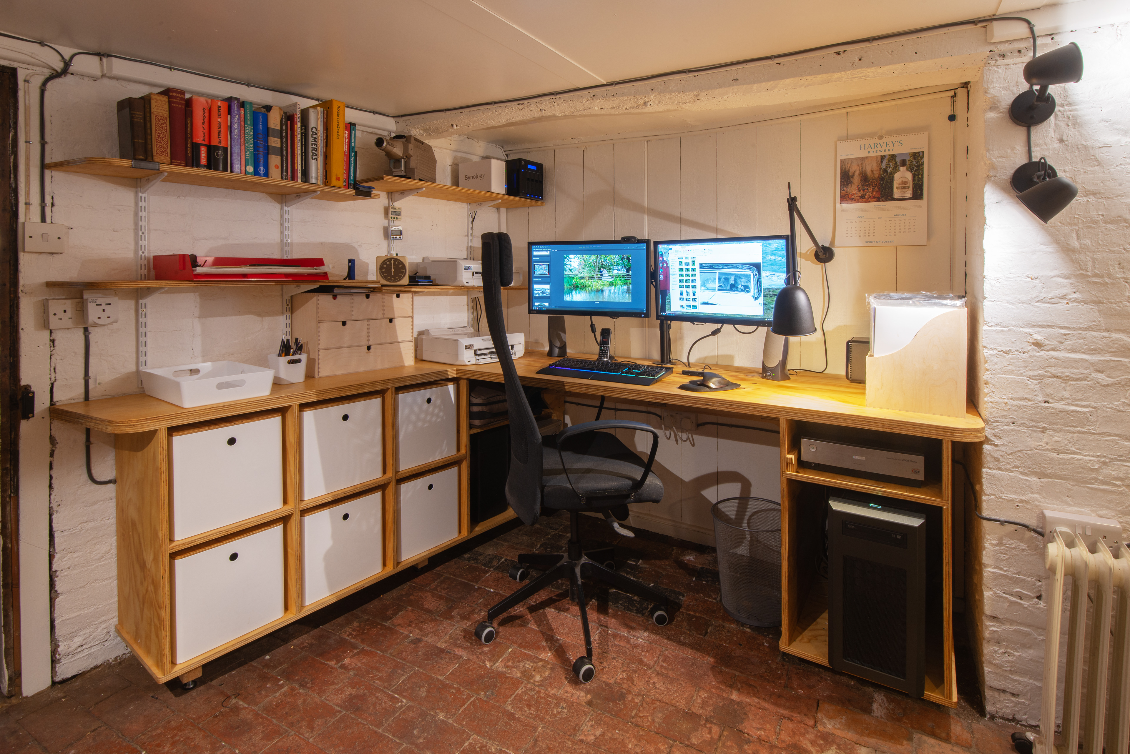 A sympathetic renovation of a historic photographic darkroom into a multi-use photography office space, with custom designed furniture built from recycled materials